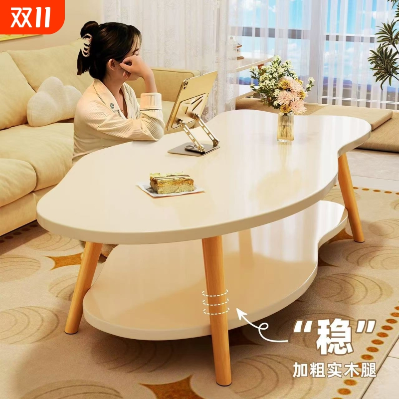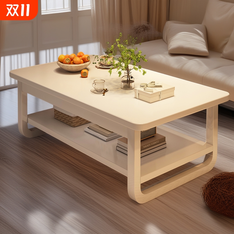 奶油风茶几客厅家用小户型桌子简易出租屋用简约现代双层沙发茶桌