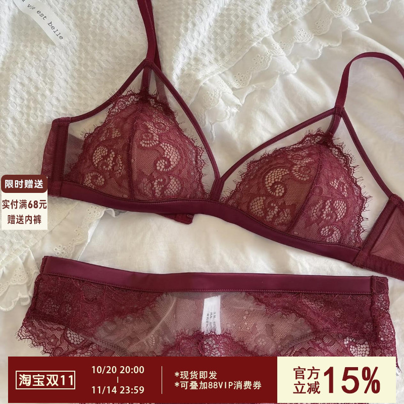 红色本命年内衣女小胸聚拢薄款无钢圈性感纯欲风新娘结婚文胸套装