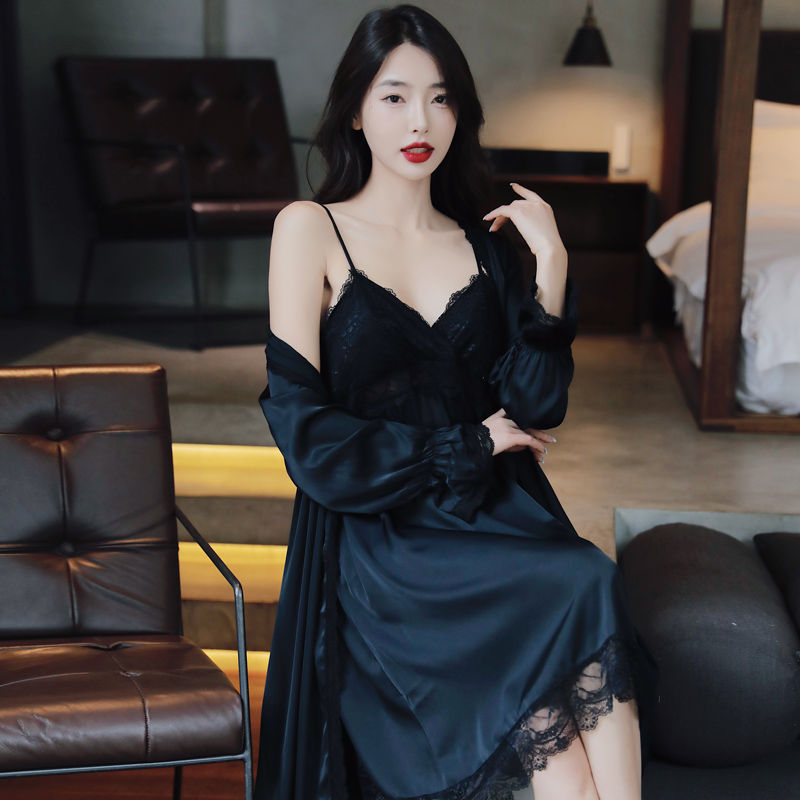 冰丝蕾丝睡裙带胸垫夏季凉感