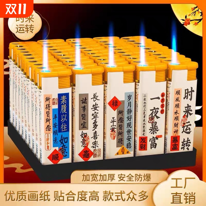 直冲防风耐用一次性打火机精美贴画个人家用商超批发50支火机防爆