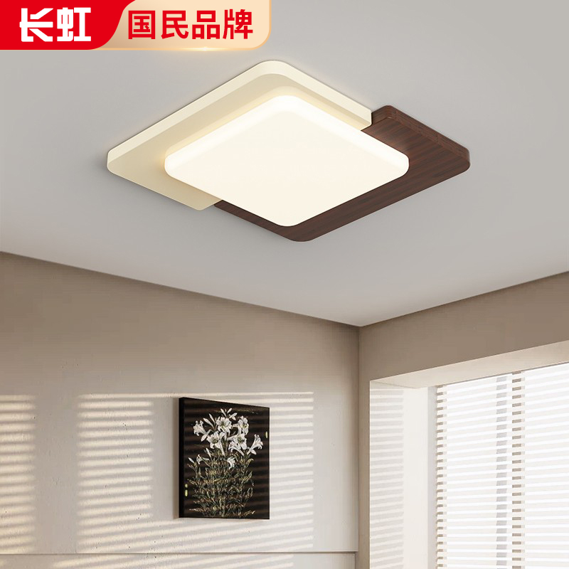 法式中古风胡桃木纹卧室吸顶灯奶油风方形房间灯全光谱护眼书房灯