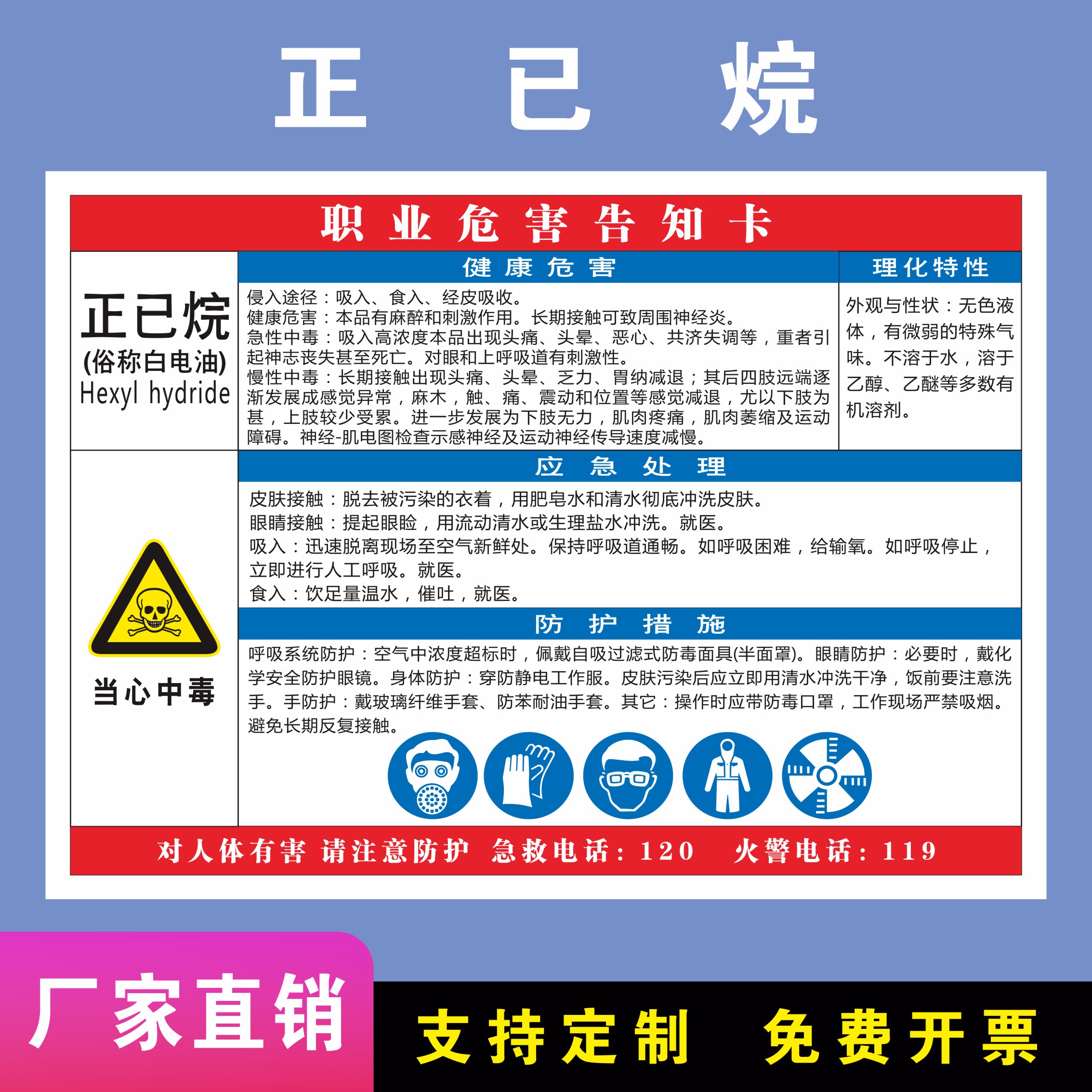 正已烷职业病危害告知卡 白电油硫酸钠正己烷乙苯万能胶周知卡警示标