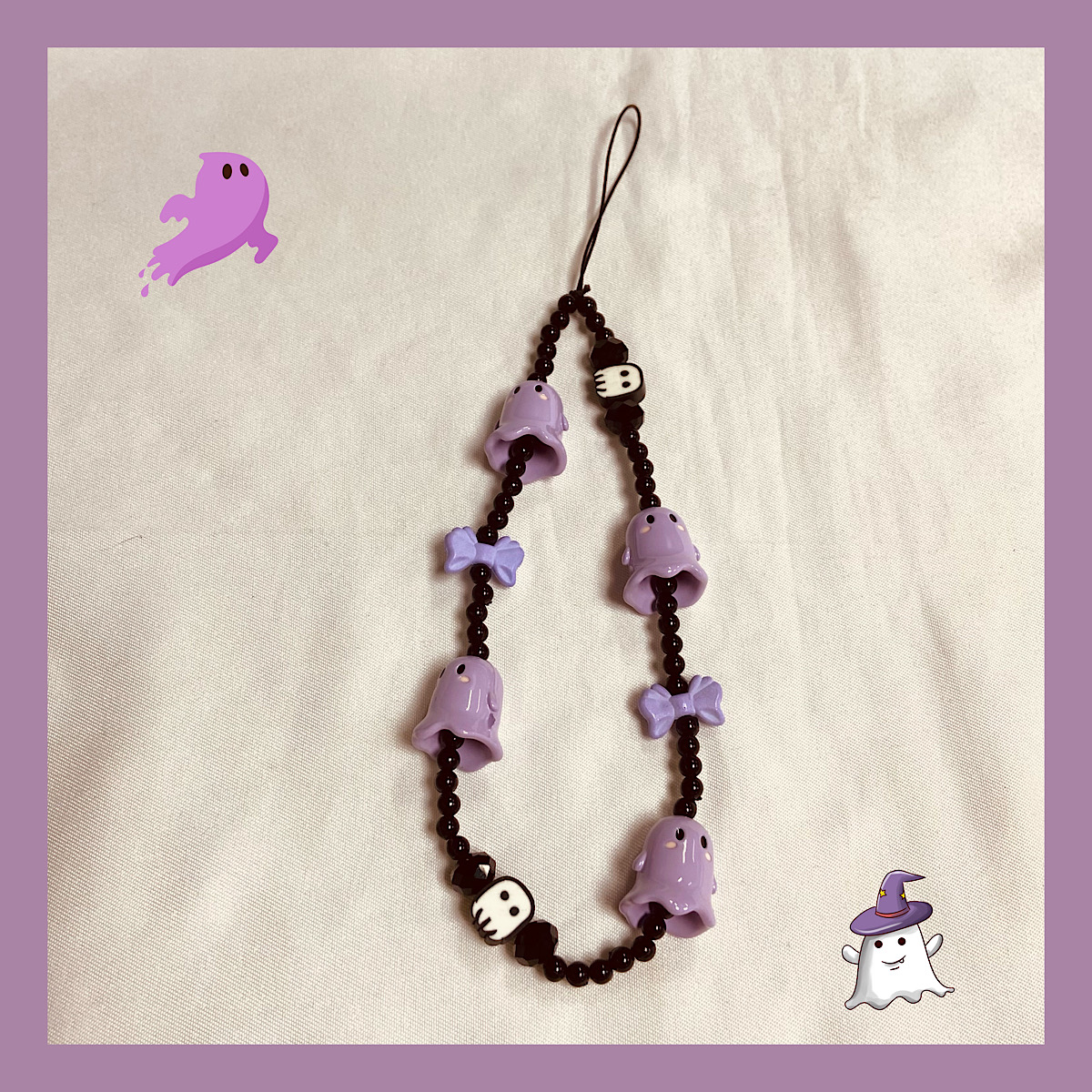 新款万圣节幽灵阿飘串珠链铃铛骷颅头挂饰ins防丢挂