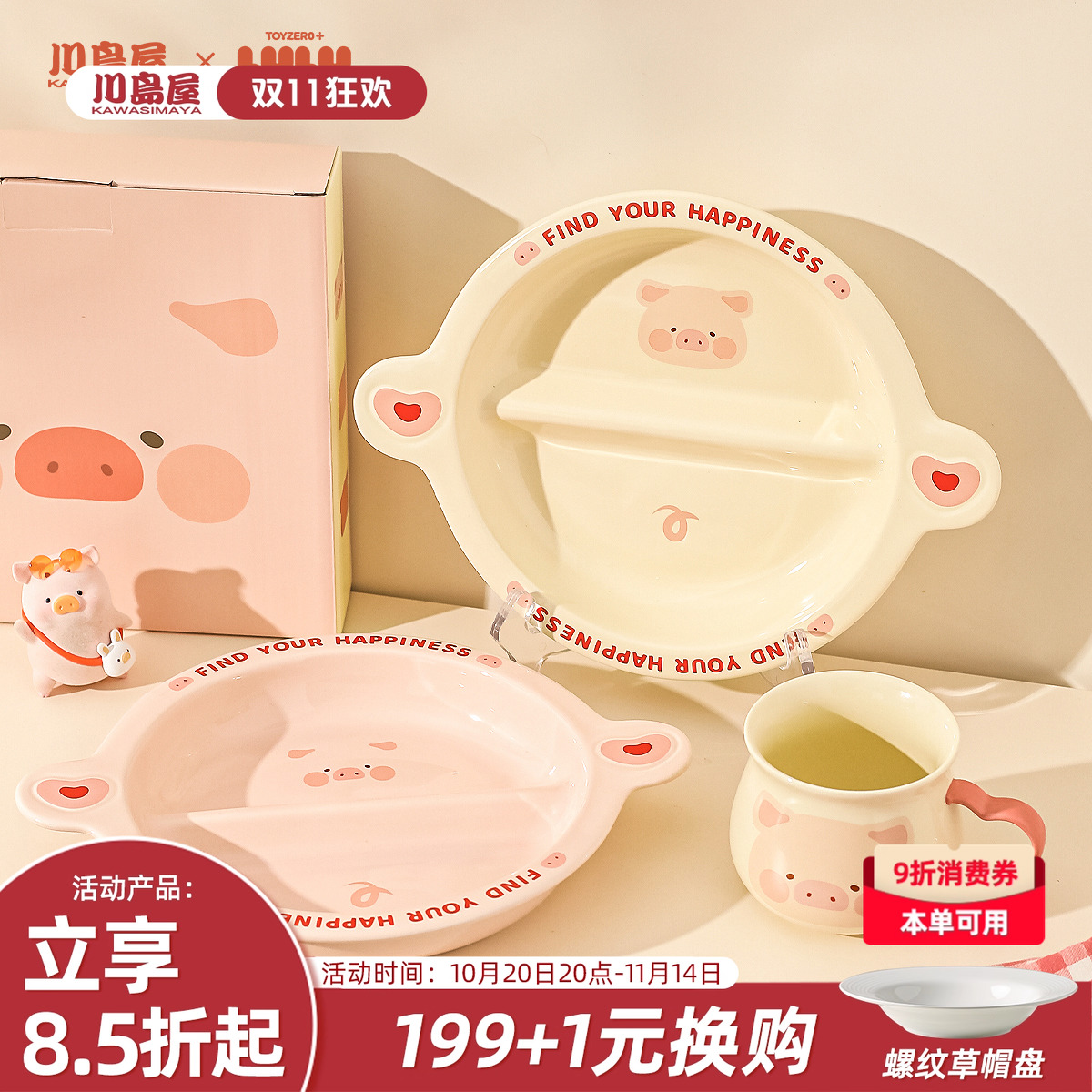 减脂三格盘陶瓷减肥卡通定量餐盘