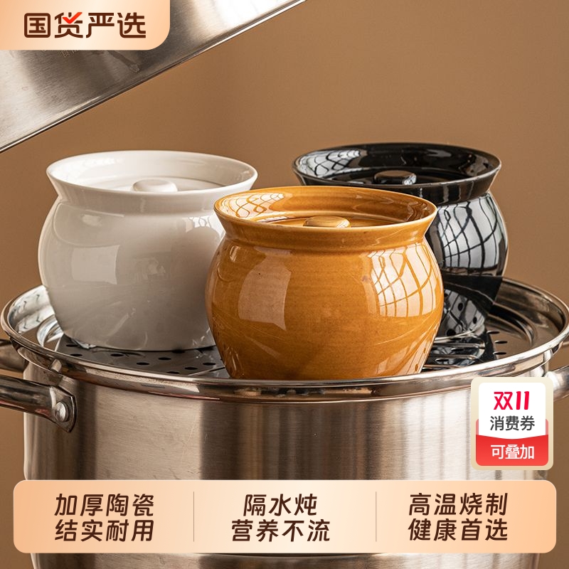 陶瓷瓦罐煨汤炖盅家用隔水炖一人食蒸蛋碗带盖炖罐江西瓦罐煲汤盅