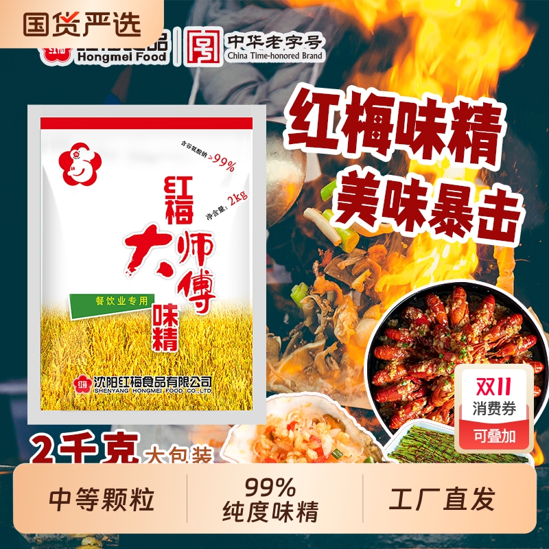 红梅大师傅味精2kg大袋提鲜味素食堂餐饮调料一袋包邮食用老牌