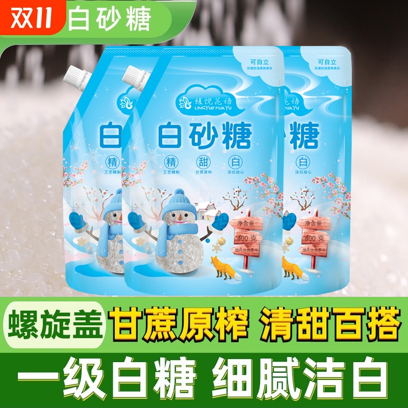 白糖白砂糖螺旋盖云南一级纯甘蔗小包装袋家用400g批发食用储存