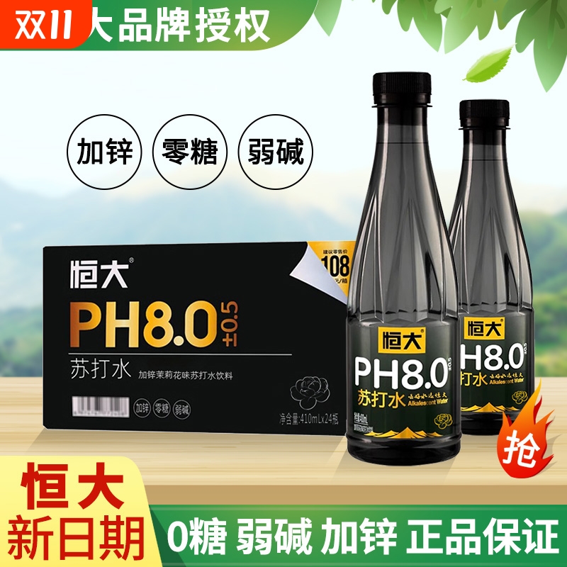 恒大苏打水410ml*24瓶整箱饮用加锌无糖弱碱水饮品正品茉莉花