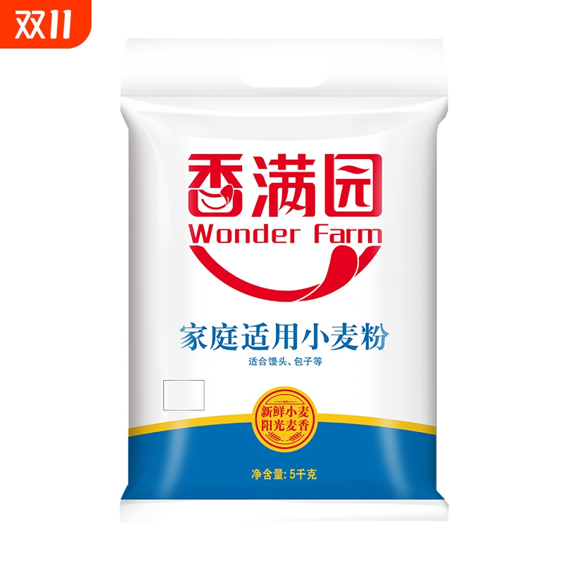 香满园家庭适用小麦面粉5kg袋装10斤 家庭通用中筋面粉包子蒸馒