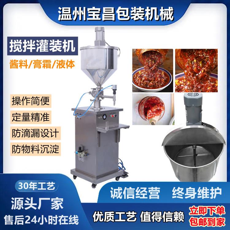 自动搅拌灌装机不锈钢耐腐蚀防滴漏辣椒酱姜糖香膏加热灌装机