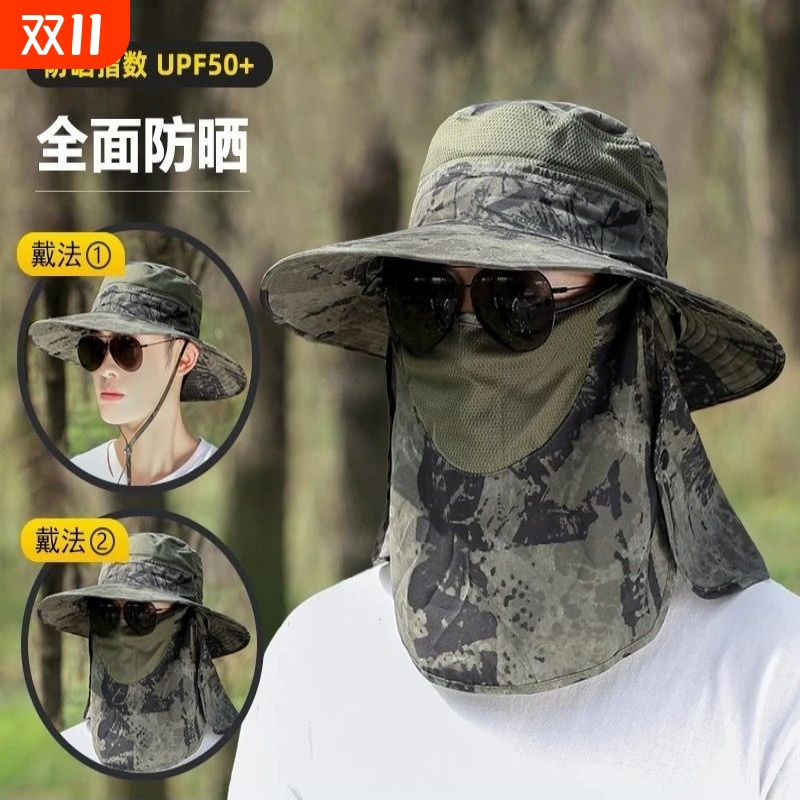 男士夏季大檐遮阳帽骑车户外新款钓鱼防晒渔夫帽潮登山透气太阳帽