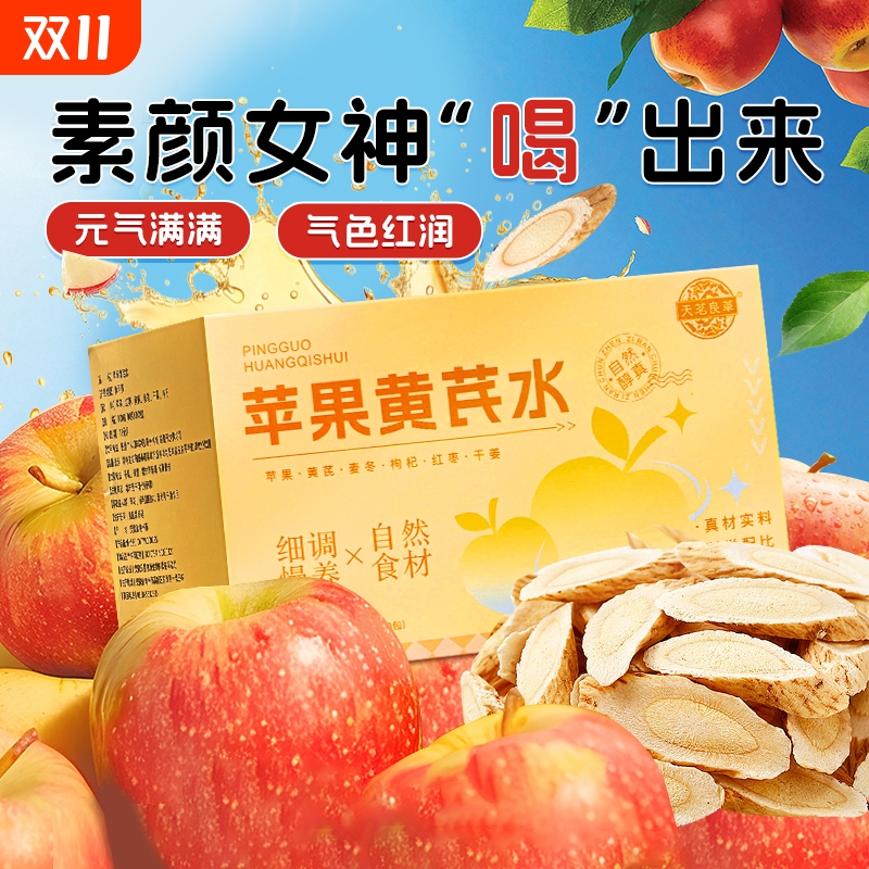 苹果黄芪水麦冬苹果素颜水补养脸色暗黄苹果片娇气血颜养生茶