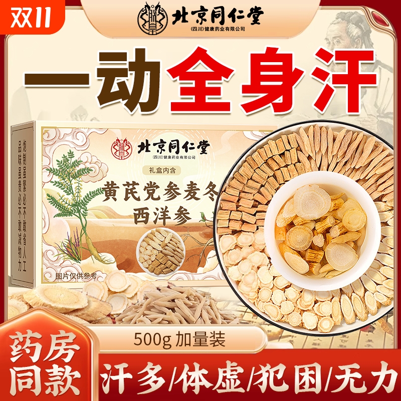 北京同仁堂黄芪麦冬五味子茶组合泡水中药店材止汗正品生脉饮茶包