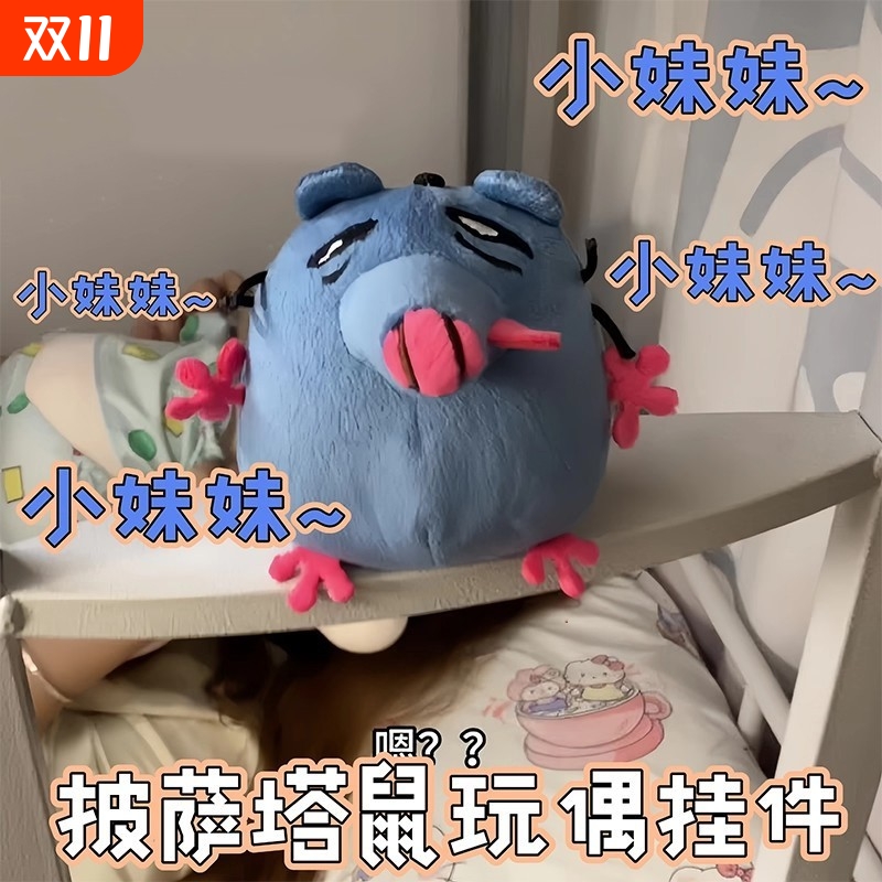 红鼻子蓝鼠玩偶抽象表情包老鼠毛绒公仔搞笑的娃娃实用朋友发声