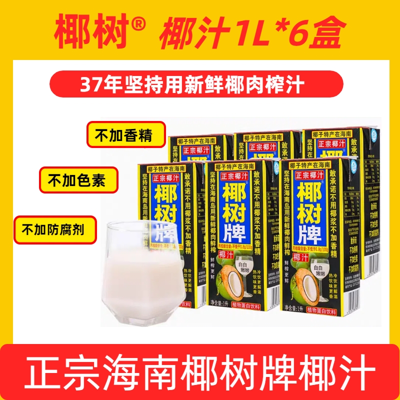 1L款海南正宗椰树牌椰汁天然植物蛋白椰子汁1升6盒/4盒/2盒饮