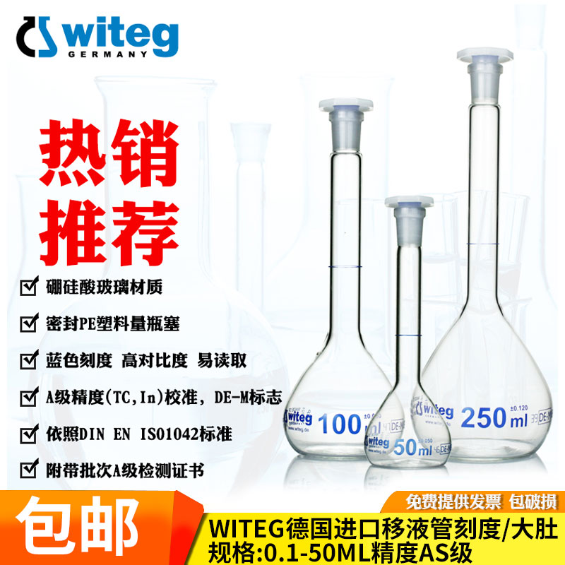包邮witeg德国进口玻璃容量瓶5 10 20 25 50 10