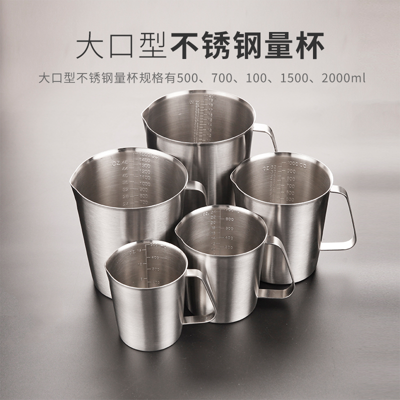 不锈钢广口量杯 304不锈钢带刻度大口量杯 带手柄烧杯500-2