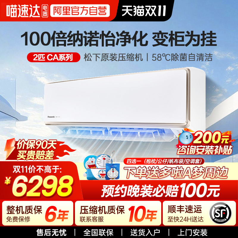 松下2匹空调新款20倍纳诺怡变频冷暖一级能效家用客厅挂机CA系列