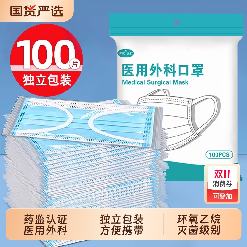 医用外科口罩一次性医疗三层防护正品夏季成人独立包装无纺布灭菌