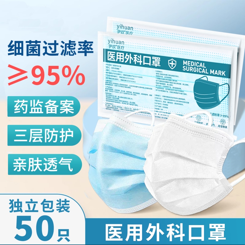 医用外科口罩一次性医疗三层成人防晒独立包装透气正品医药防护