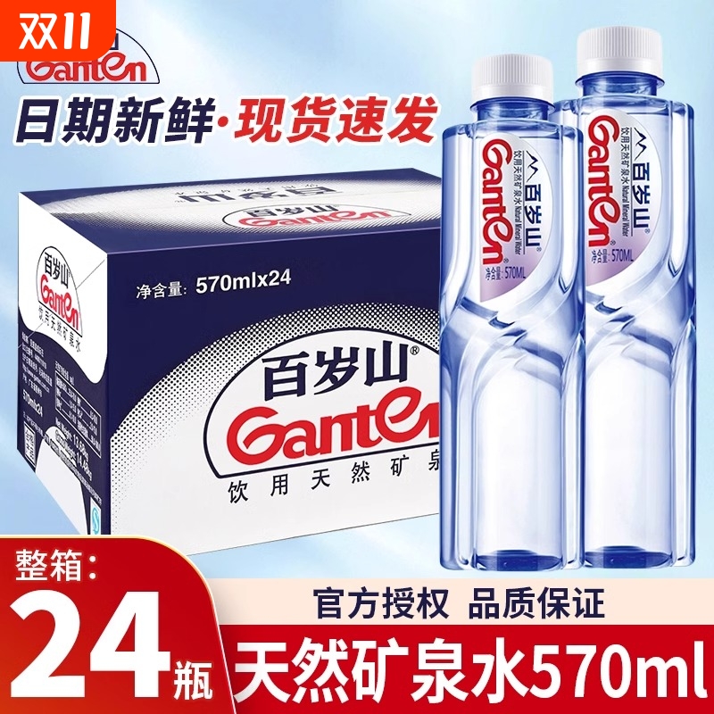 Ganten/百岁山天然矿泉水348ml*24瓶一整箱高端饮用水