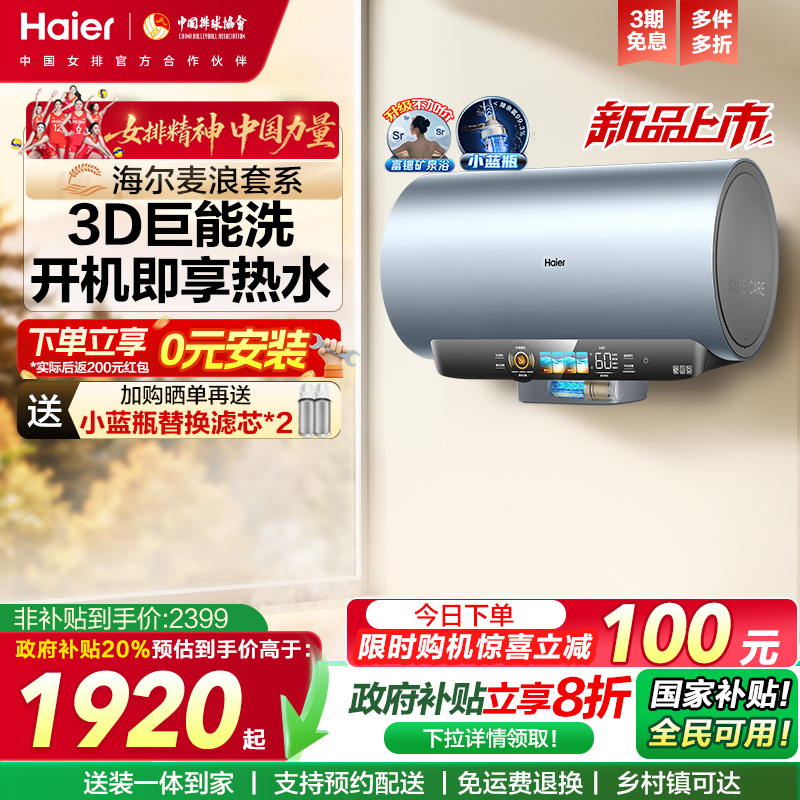 海尔麦浪电热水器家用官方速热卫生间60升一级能效小蓝瓶DR7pr