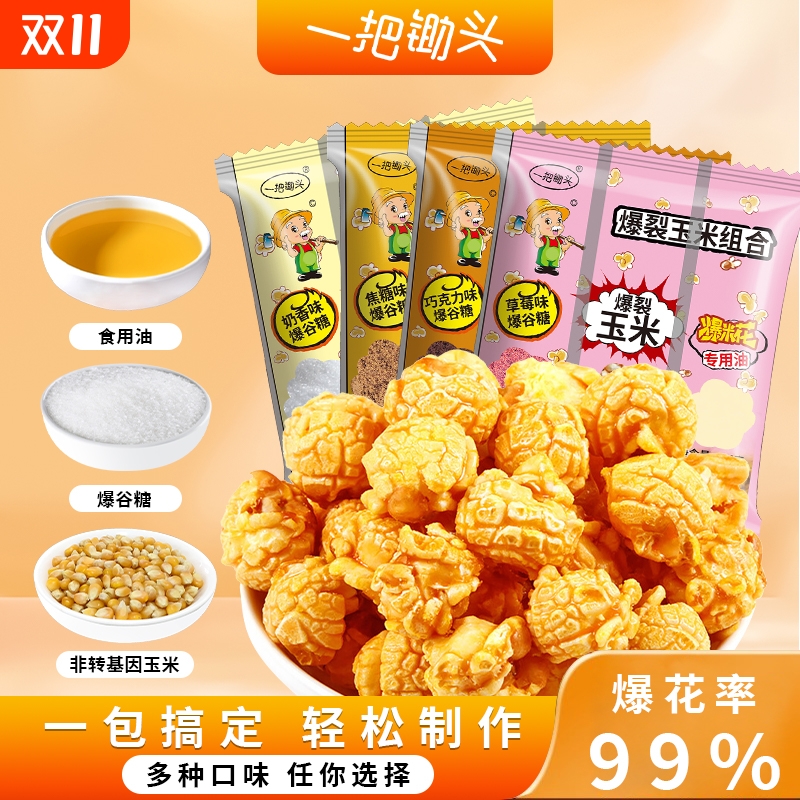 爆米花专用玉米粒三合一球形东北爆裂玉米组合油焦糖自己爆小零食
