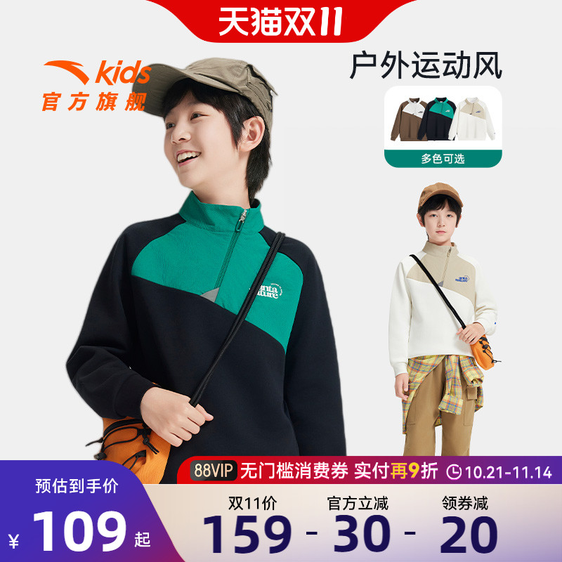特步童装男童圆领卫衣2025秋冬新款大童秋装儿童套头加绒运动上衣