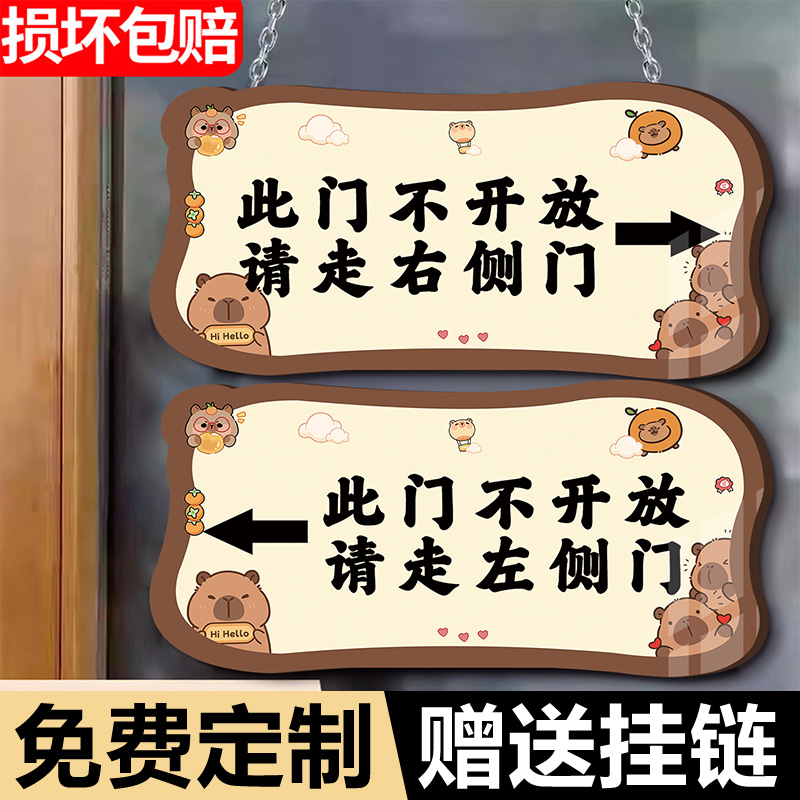 此门不开提示贴玻璃贴定制定做亚克力此门不通提示牌请走右侧门正门标