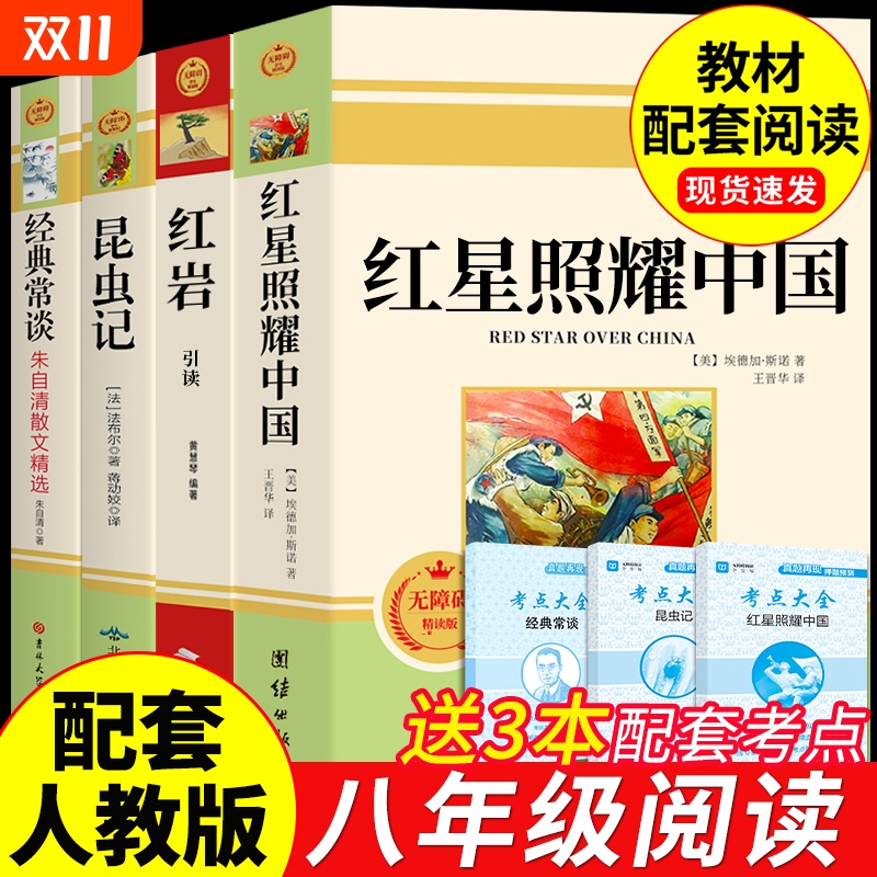 红岩引读版和红星照耀中国昆虫记必读正版原著完整版八年级上册的课外