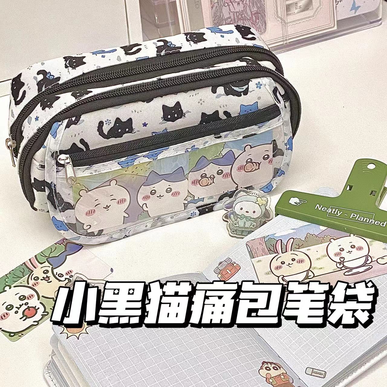 ins新款治愈小猫多功能痛包卡通大容量多层笔袋学生高颜值文具袋