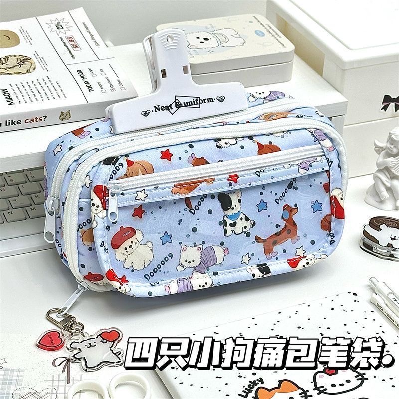 新款ins卡通高颜值小狗笔袋多层PVC大容量痛包学生印花文具收纳