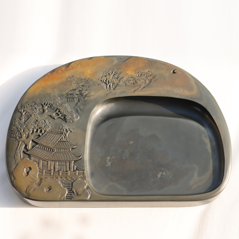 砚台《世外桃源》歙砚老坑眉纹籽料元原石龙尾砚台名师作品收藏砚