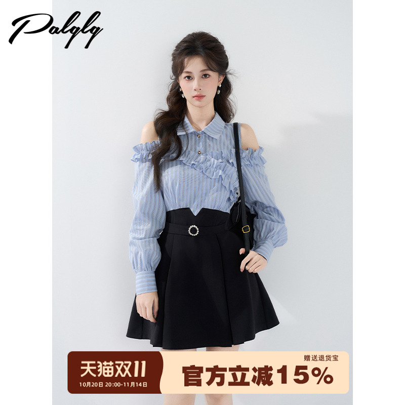 秋季欧美时尚减龄收腰修身过膝连衣裙2025新款假两件衬衫裙