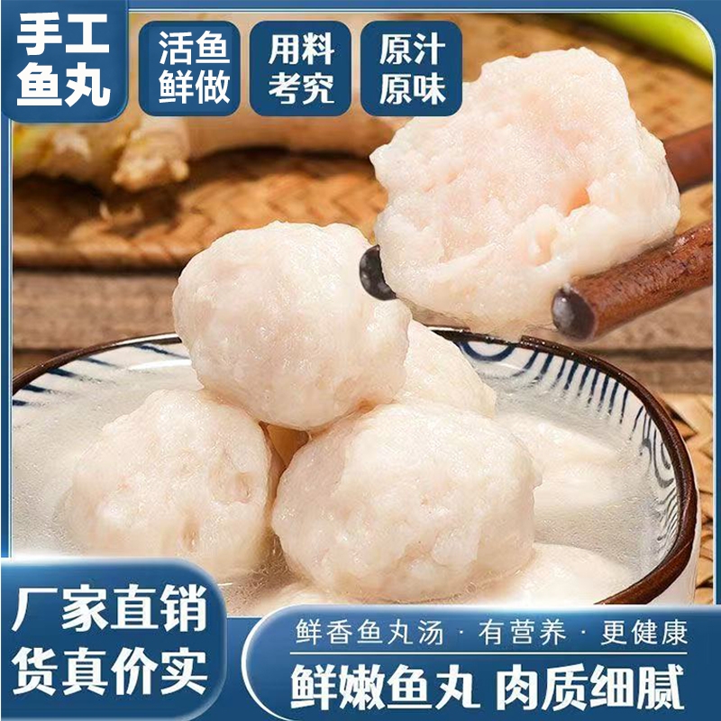 鲜鱼丸子火锅食材新鲜鱼肉淡水鱼冷冻手工实心鱼丸小鱼丸湖北特产