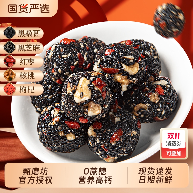 无糖黑芝麻丸球核桃仁桑葚软糕生发养发休闲零食正品官方旗舰店