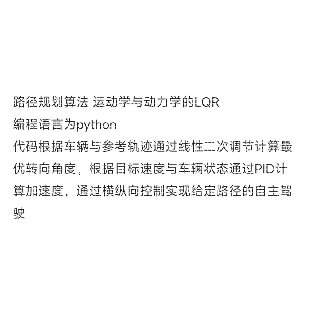 路径规划算法 运动学与动力学的LQR 编程语言为python