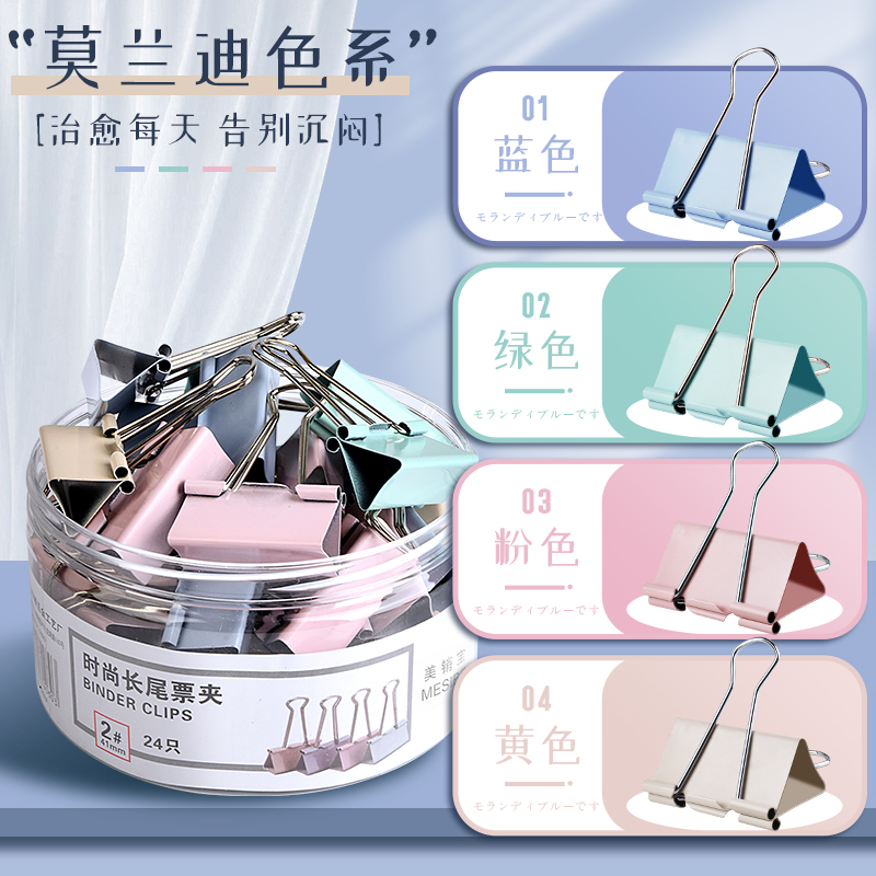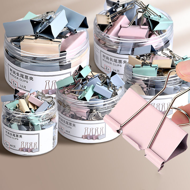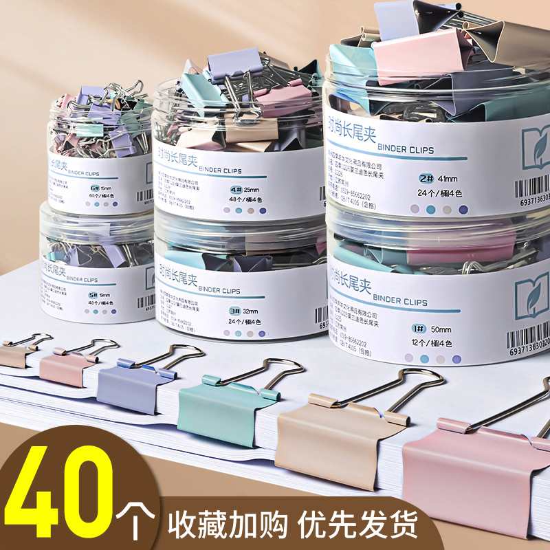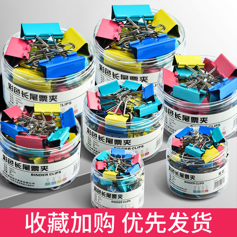 彩色长尾夹燕尾夹大号中号小号票据铁夹子混合装文件新款固定书本文具