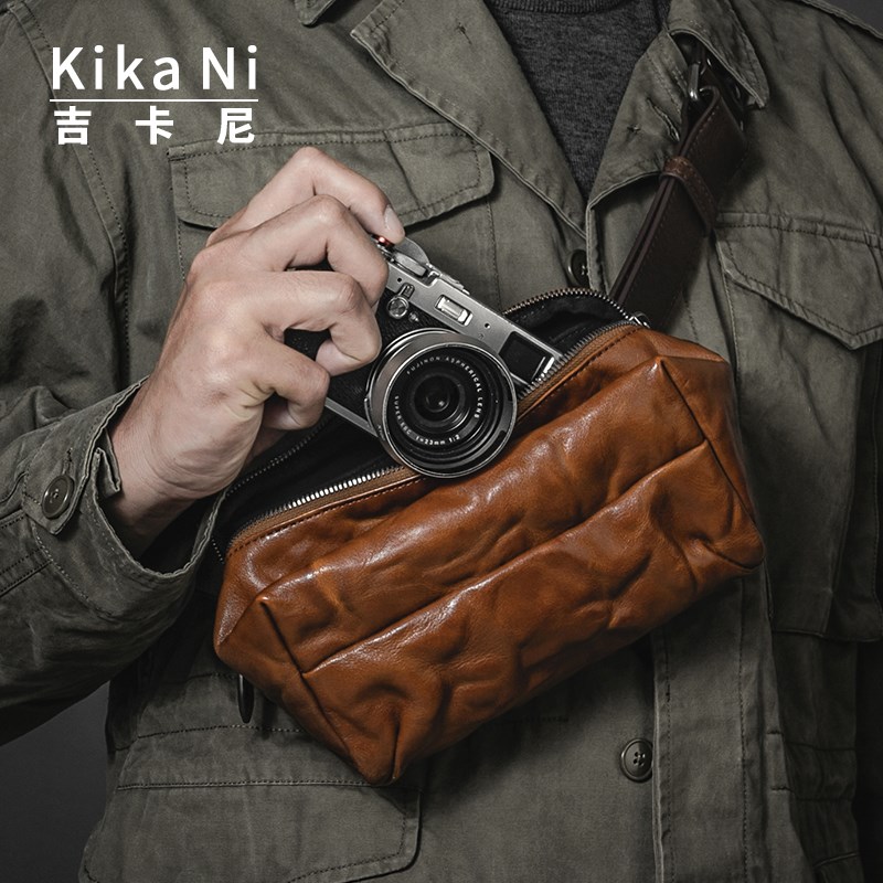 吉卡尼 胸包男款潮牌个性斜跨百搭运动包相机牛皮小背包骑行男包