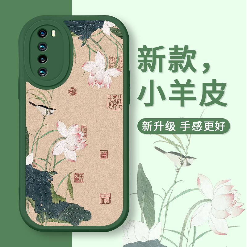 书法荷花适用于华为nova10手机壳nova11小羊皮镜头全包p