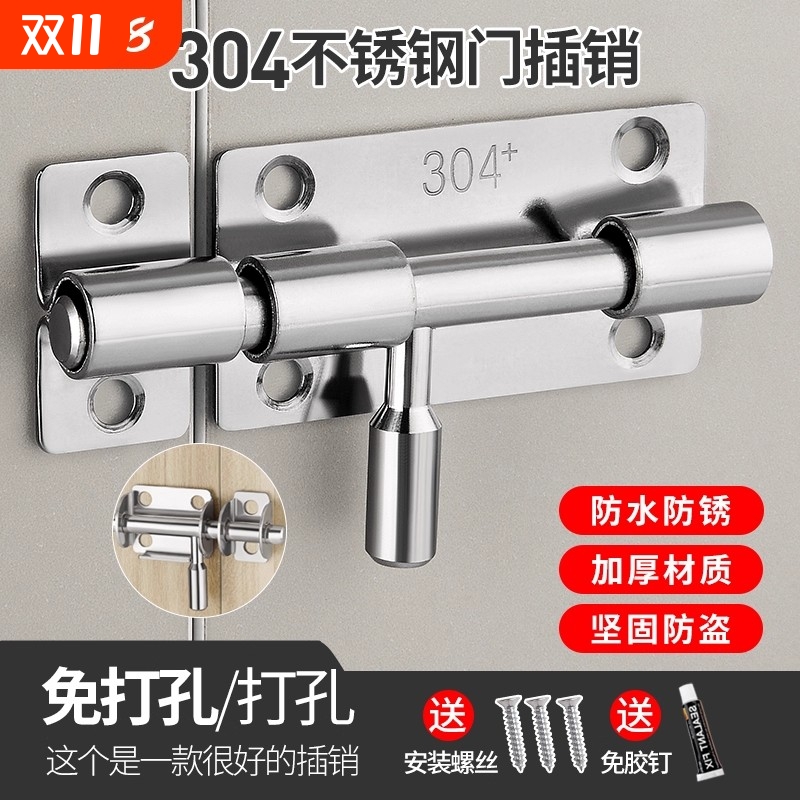 304不锈钢插销门锁扣木门窗卫生间防盗门栓门扣明装免打孔简易