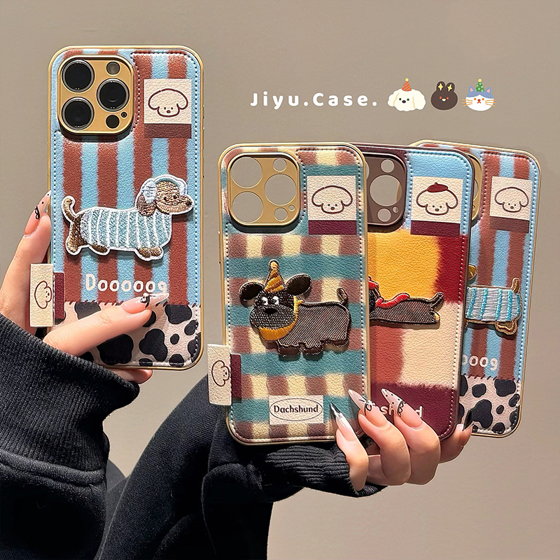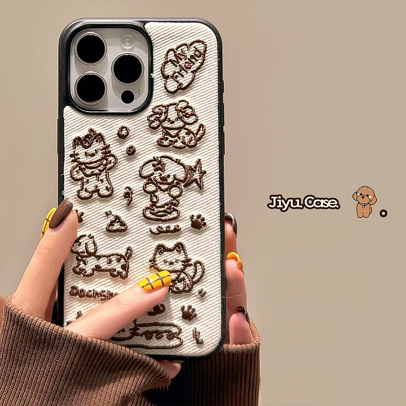 卡通刺绣猫咪狗狗适用苹果手机壳