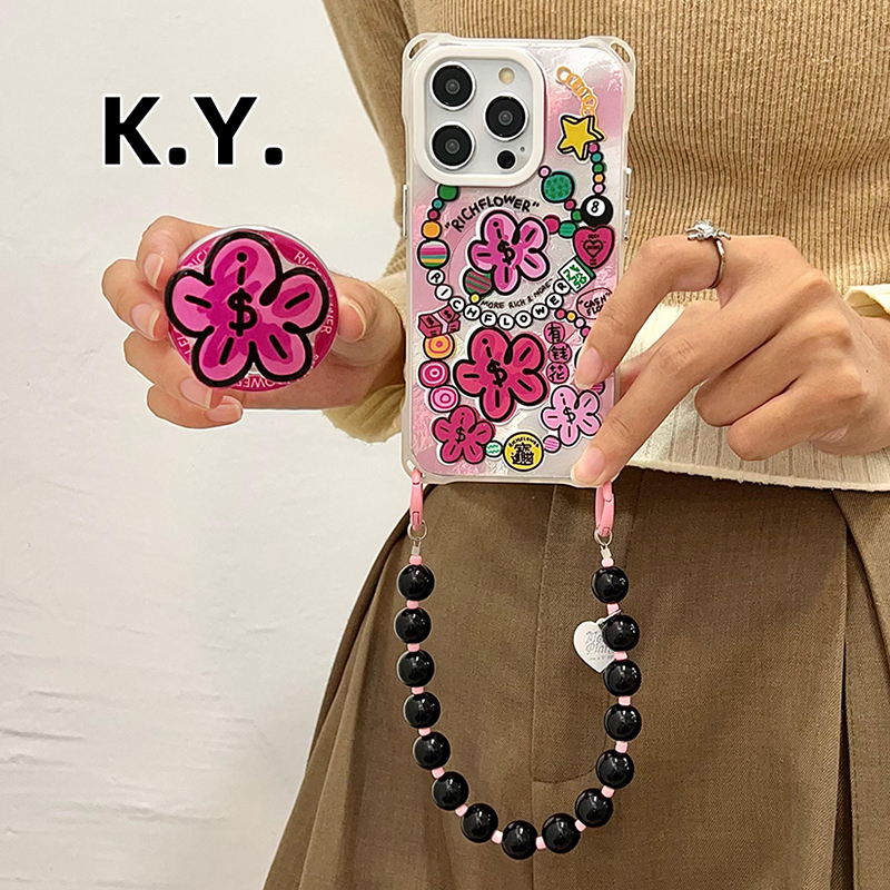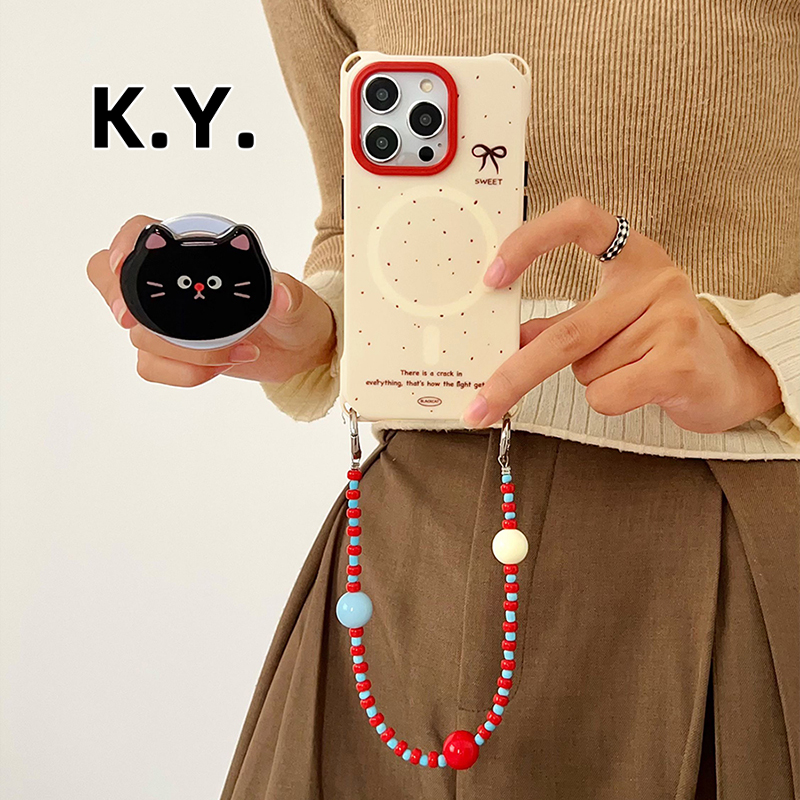 卡通红鼻子黑猫猫咪磁吸支架手机壳带挂绳适用于iPhone16pr