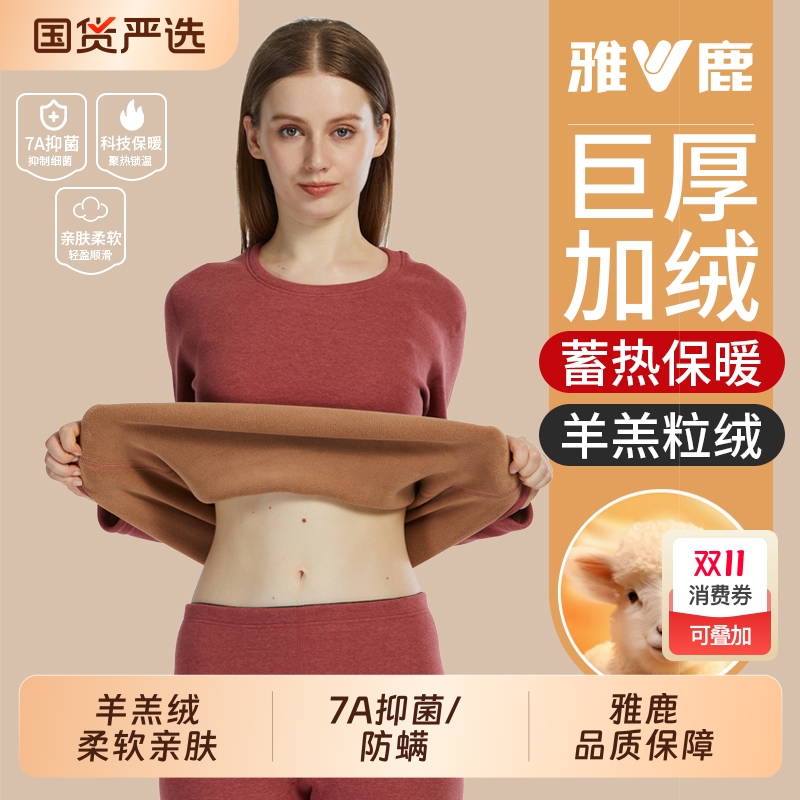 雅鹿保暖加绒内衣女士秋衣秋裤套装加厚德中老年人妈妈中高领冬季