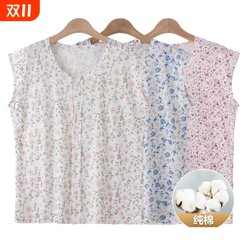 奶奶装夏季纯棉开衫背心中老年人夏装宽松无袖汗衫老太太内衣上衣