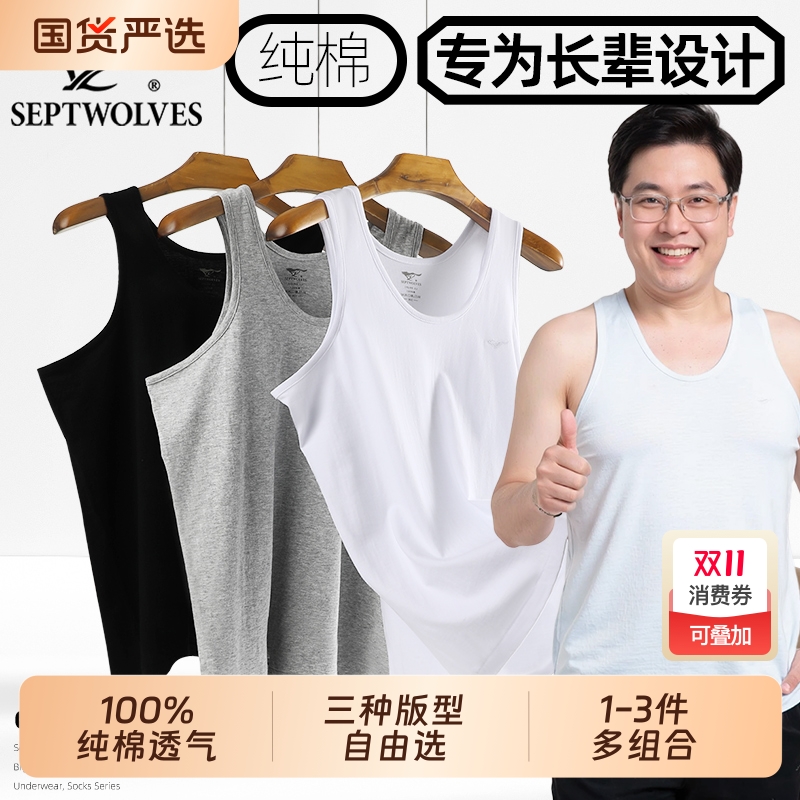 40支精梳棉男士背心纯棉内穿加大码宽松夏季中老年人跨栏汗衫爸爸