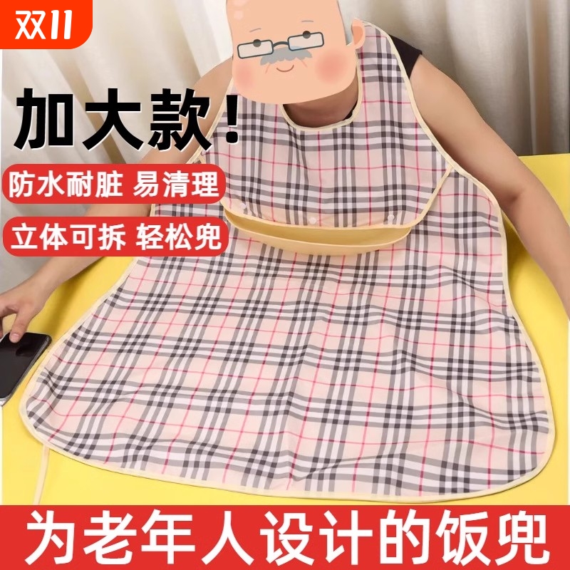 老人吃饭用的围兜成人防水饭兜口水巾老年人专用围裙大人围嘴大号