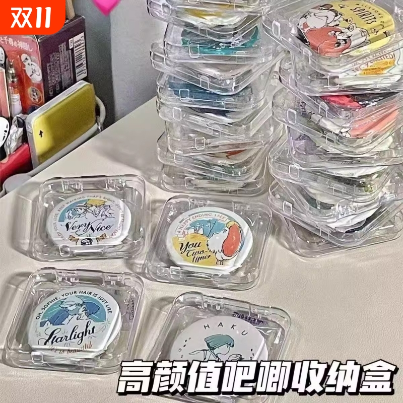 ins吃谷人吧唧保护壳首饰展示架硬壳收纳盒子防尘美甲收纳盒方形