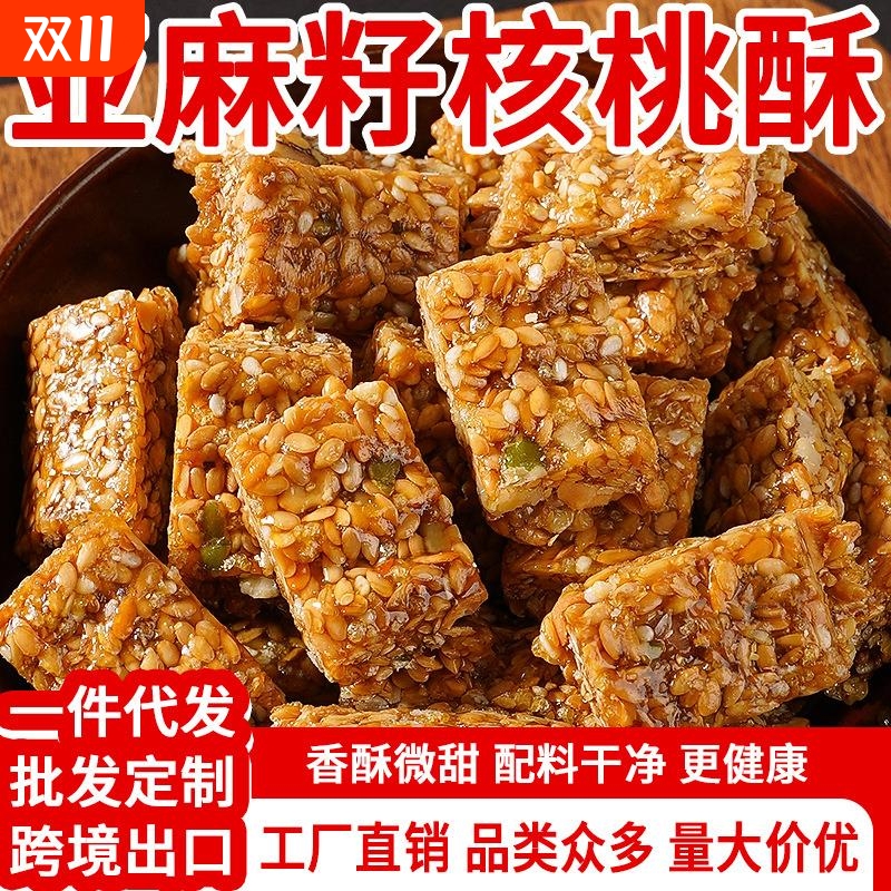 亚麻籽核桃酥无蔗糖食品人老人吃的健康零食大全休闲小吃糕点芝麻