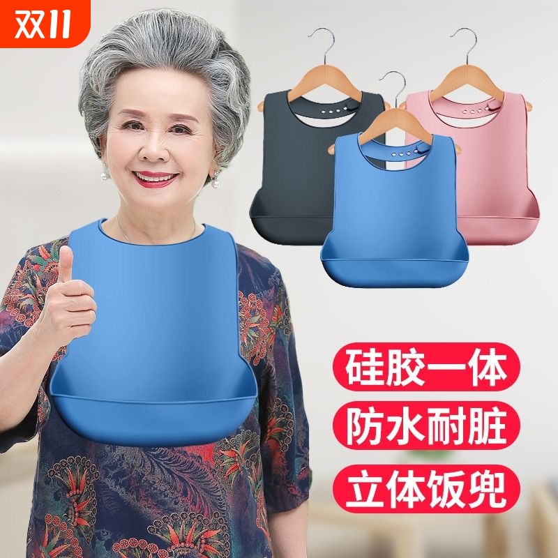 老人饭兜老年人吃饭用的围兜大人防水围嘴成人专用硅胶口水巾兜兜